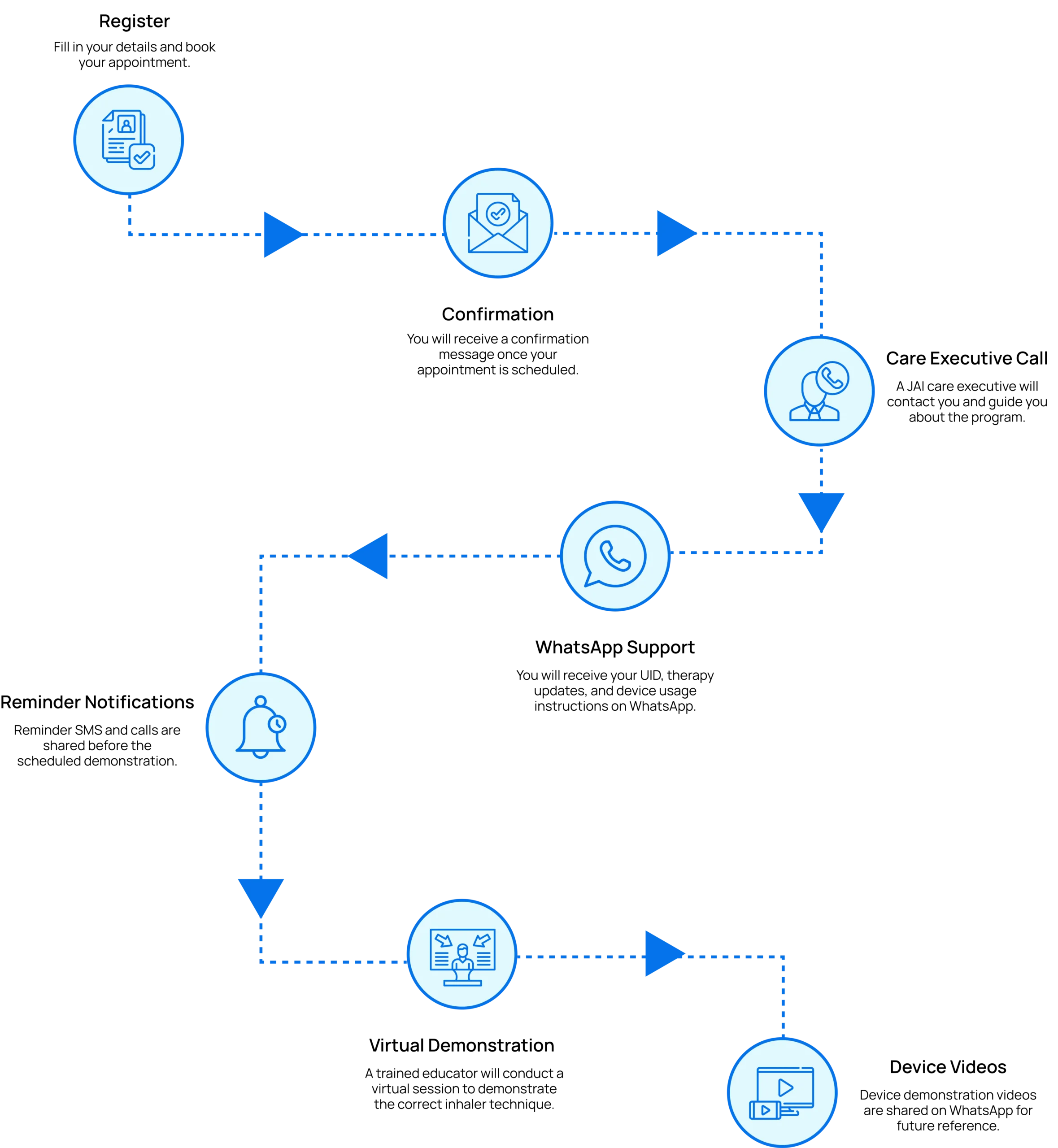 Through JAI, patients receive expert guidance on the correct inhaler technique, along with access to doctor-recommended virtual support services such as pulmonary physiotherapy, diet counselling, and yoga sessions that help improve breathing capacity and overall well-being.