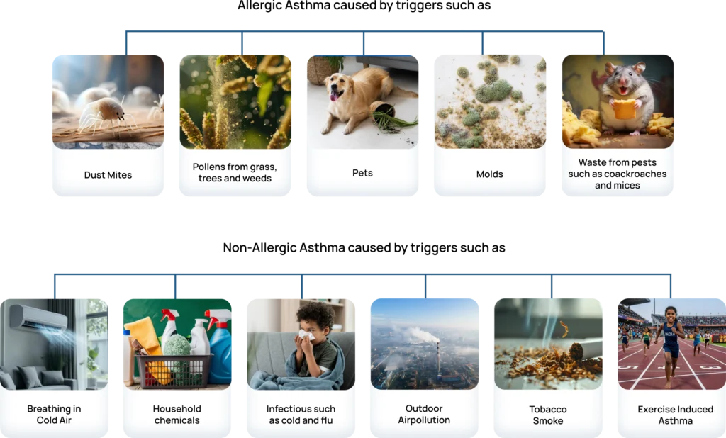 Asthma is a chronic Lung disease. A recent study concluded that about 8 out of every 100 Indian children have Asthma. It usually starts in childhood, before the age of five, and it affects your child’s airways, which are the tubes that transport air in and out of the lungs.