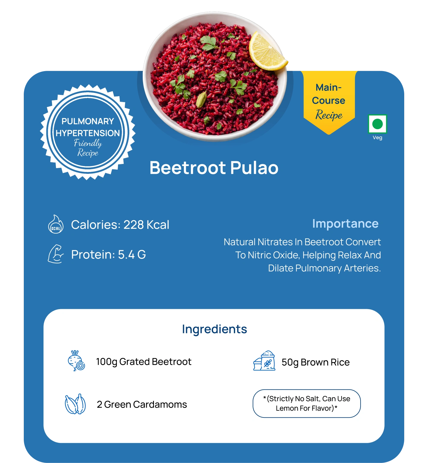 Natural nitrates in beetroot convert to Nitric Oxide, helping relax and dilate pulmonary arteries.